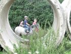 031 Při zpáteční cestě jsme zastihli Míšu, jak už bravurně pomáhá v místním družstvu |  032 A další adept už je připraven..Trawel Arwen a první nasednutí.. |  033 Místní obecenstvo a kadeřnický salon v jednom - Nelinka a Bobinka 23.7.2014 |  034 A už tu máme nic netušící dítě - Míša Čejka , které s radostí očekává "krocení koně" |  035 Máma pomůže a už se skáče do sedla |