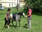 046 Ivet je nezdolná... ještě kopýtka vyčistit 23.7.2014 |  047 Konečně výběh, teď si jdou holky postěžovat, co že to s nima děláme 23.7.2014 |  048 No, kobyly měly volno, za to mi jsme skočili do sedel a hurá na plac... 23.7.2014 |  049 Bonbón s páníčkem. |  050 S Marwelem jsme si trošku promluvili...a jak mu to pane šlo samotnému |